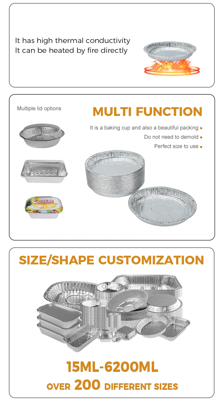 Trapezoidalny kształt tego produktu nie tylko dodaje wizualne piękno, ale jest również bardzo łatwe do układania i przechowywania, oszczędzając miejsce do przechowywania. Jednocześnie ten projekt ułatwia dostęp do przedmiotów i nie jest łatwo poślizgnąć się nawet podczas zajęć terenowych, co znacznie poprawia bezpieczeństwo użytkowania. Ponadto 7-9-calowa patelnia do pizzy srebrne pojemniki z folii aluminiowej mają lekki design, dzięki czemu jest idealny na pikniki na zewnątrz. Możesz zabrać go ze sobą w dowolnym miejscu, w dowolnym miejscu, czy to w domu, czy na zewnątrz, co ułatwia każdą okazję.