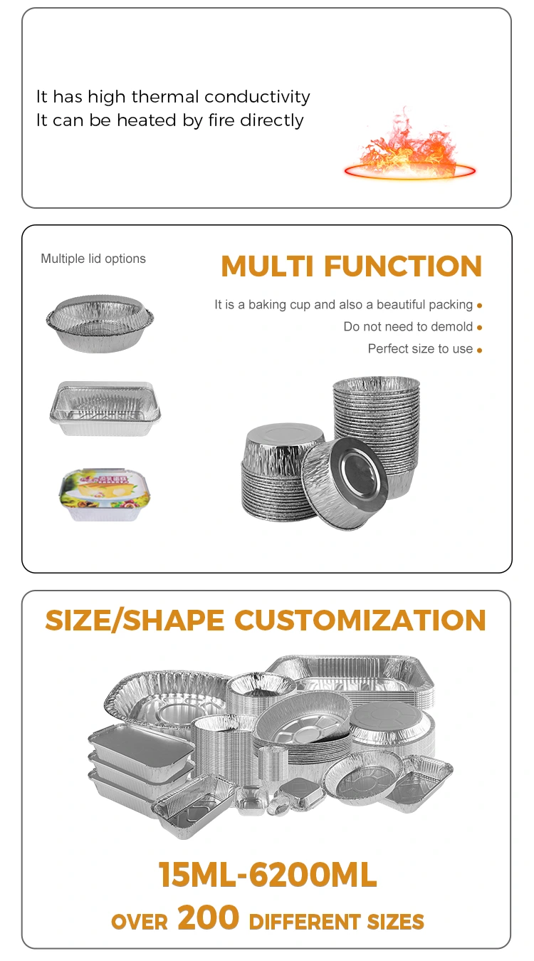 Yunchu aluminiowy dostawca folii do pieczenia kubek do pieczenia srebrny pojemnik na folię aluminiową pieczenie i kształtowanie dwóch w jednym, wieloosobowym pojemniku z folii aluminiowej, pieczenie, gamę grilla, może być podgrzewana na otwartym płomieniu i odporna na pieczenie, zamiast garnków, pieczenia, domów, domów, można zastosować fabryki żywnościowe, mało rozmiaru, aby być używane, a nie zintegrowane, nie zintegrowane, nie zintegrowane miejsce, nie można zintegrować. Trzeba być złożone i ukształtowane, fantazyjne użycie, jedna forma wielofunkcyjna, pudding, ciasto, tarty jajeczne, jajka na parze, grilla itp., Przeciwko-steksu i łatwych do pobrania, łatwe do spalania, gładkie w środku można uwolnić z lekką szczyptą, odporność na ogrzewanie płomienia i nie zrywając, może to zapobiec małym przekąskom i czekoladom, a można go ulepszyć, a różnorodność kolorów może być niestandardowa.