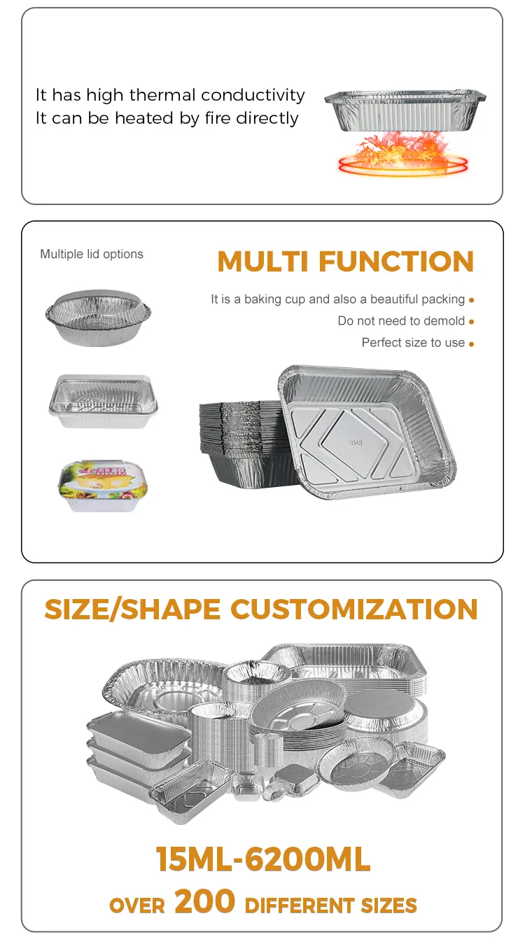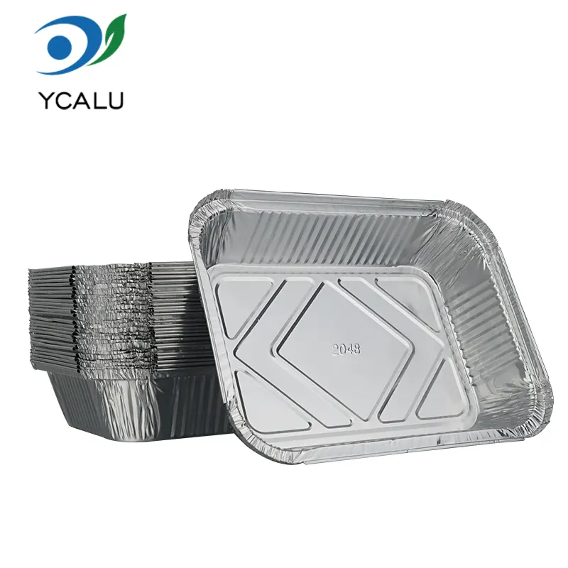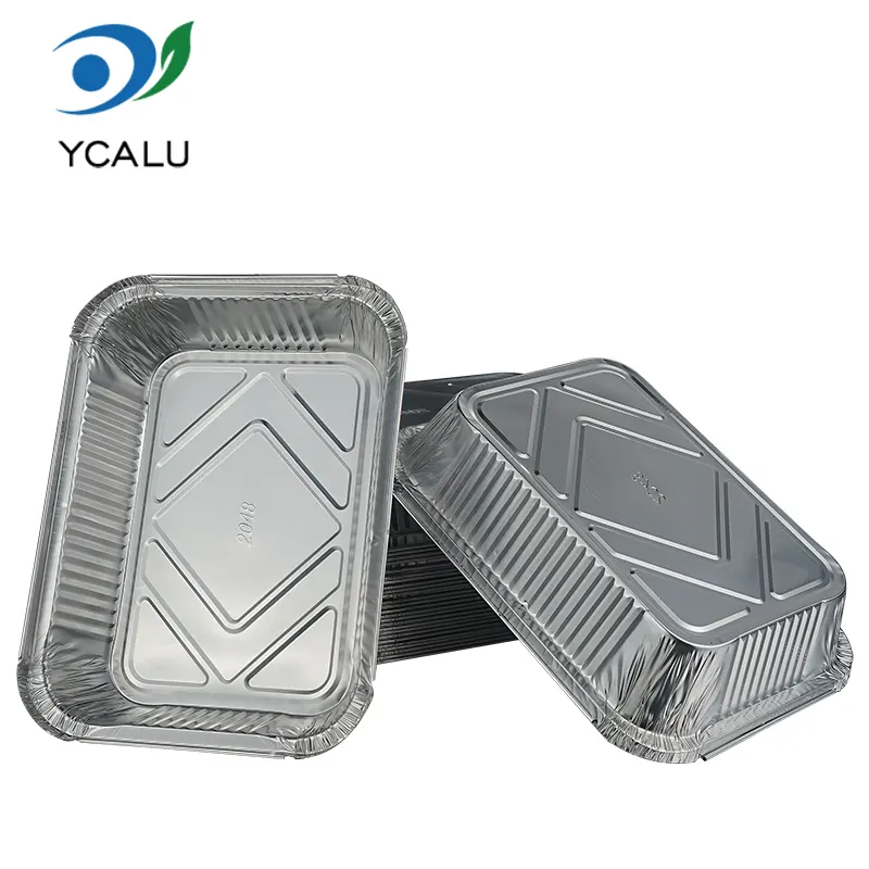 Jednorazowe pudełko na lunch do pieczenia na grillu firmy Yunchu w fabryce folii aluminiowej firmy Yunchu Pojemnik na lunch ze srebrnej folii aluminiowej wykonany jest z folii aluminiowej o wysokiej czystości, przeznaczonej do kontaktu z żywnością. Jest nietoksyczny i pozbawiony smaku, odporny na wysoką i niską temperaturę. Temperatura topnienia wynosi aż 250°C. Może mieć bezpośredni kontakt z żywnością. Nie wydziela szkodliwych substancji po podgrzaniu w wysokich temperaturach. Może również zachować stabilny kształt po schłodzeniu i zamrożeniu. Jest to projekt jednorazowy i po użyciu można go wyrzucić. Nie trzeba tracić czasu na czyszczenie talerzy i form do pieczenia, całkowicie detoksykując. Rozwiązuje to uciążliwy problem czyszczenia po posiłkach i szczególnie nadaje się do scen takich jak spotkania z wieloma osobami i podróże na świeżym powietrzu. Ulepszony, zagęszczony materiał z folii aluminiowej ma solidną teksturę i dużą zdolność nośną. Nie jest łatwo przeciekać lub odkształcać się podczas trzymania naczyń z zupami lub ciężkimi składnikami grilla. Krawędzie są gładkie i pozbawione zadziorów, dzięki czemu użytkowanie jest bezpieczniejsze. Nadaje się również do piekarników, frytkownic, urządzeń do gotowania na parze i innych przyborów kuchennych, a gotowanie i podawanie można wykonać w jednym kroku.