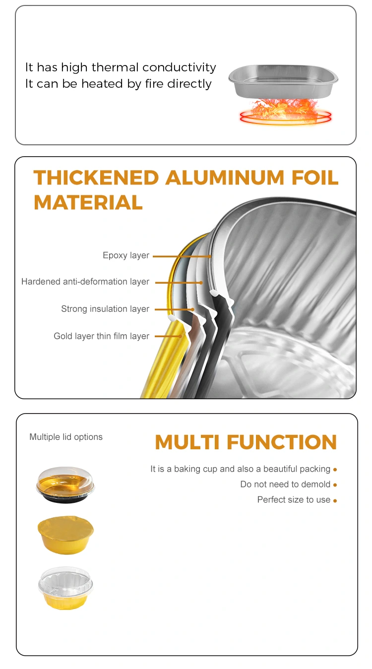 Jest to idealne opakowanie do tart jajecznych, brownie, babeczek, pojedynczych kawałków pizzy czy kruchych ciasteczek. Właściwości izolacyjne folii aluminiowej pomagają zachować ciepło i miękką konsystencję ciastek zaraz po ich upieczeniu; doskonale zachowuje smak i nadaje się do spożycia na wynos z piekarni i kawiarni.