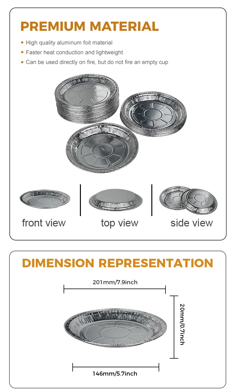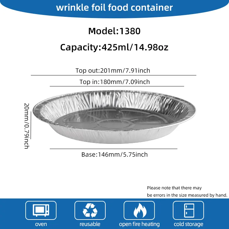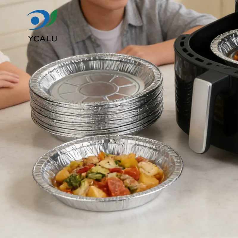 Yunchu Folia aluminiowa Jednorazowa frytkownica powietrzna z dyskiem Srebrny pojemnik z folii aluminiowej Folia aluminiowa o wysokiej czystości do kontaktu z żywnością nie zawiera zanieczyszczeń ani zapachu i jest zgodna z krajowymi normami dotyczącymi materiałów do kontaktu z żywnością. Może mieć bezpośredni kontakt z surowymi i gotowanymi składnikami – czy to marynowany grill, orzeźwiające pieczone warzywa, czy miękkie, kleiste i słodkie pieczone desery. Nie ma możliwości przedostania się szkodliwych substancji. Srebrna błyszcząca folia aluminiowa ma doskonałą przewodność cieplną. Jednoczęściowa konstrukcja dysku pasuje do większości rozmiarów frytownic. Dostępny w rozmiarach 6, 7 i 8 cali, nadaje się do małych porcji i dzielenia się nim z całą rodziną. Nie ma potrzeby powtarzania regulacji. Można go łatwo umieścić w koszu do smażenia, pozwalając w pełni wykorzystać zalety materiału.