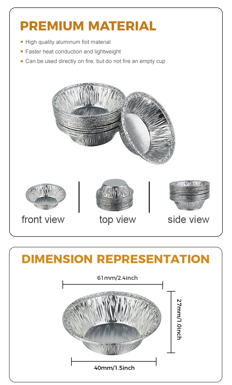 Foshan Yunchu Aluminium Foil Technology Co., Ltd. Jednorazowy pojemnik na tartę jajeczną ze srebrnej folii aluminiowej, oparty na zaawansowanych zautomatyzowanych liniach produkcyjnych i ścisłej kontroli jakości, kunszcie. Jednorazowy pojemnik na tartę jajeczną Yunchu z folii aluminiowej, ze srebrnej folii aluminiowej, z materiałami przeznaczonymi do kontaktu z żywnością i doskonałą wydajnością, odpowiedni do wielu scenariuszy domowych i komercyjnych, dzięki czemu pieczenie jest bardziej bezproblemowe i smaczne.