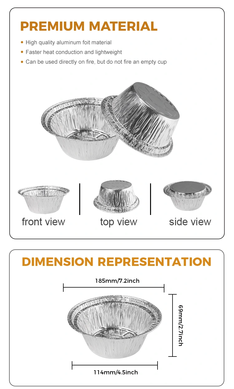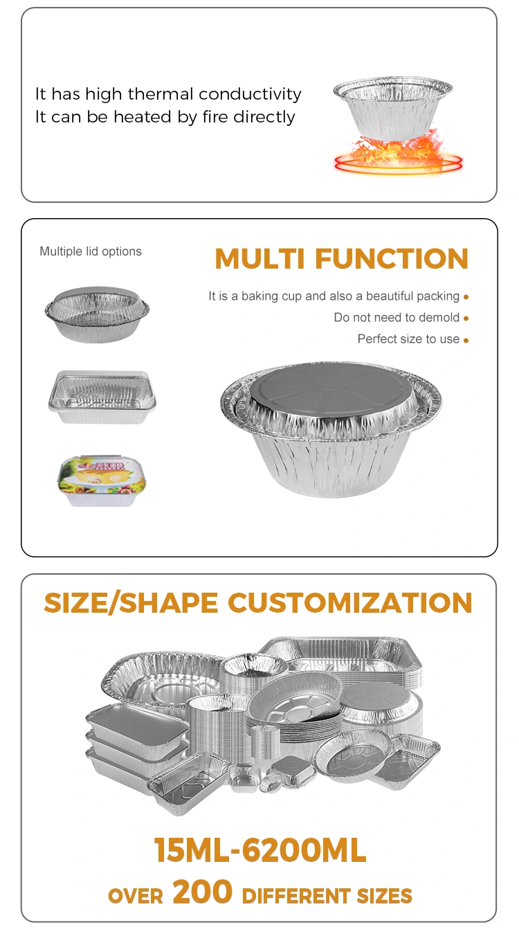 Dostawca folii aluminiowej Yunchu okrągły mały pakiet Pakowanie Srebrny pojemnik na żywność aluminium aluminium jest wykonany z żywności materiału foliowego aluminiowego, po kontroli certyfikacji żywności firmy, materiał jest pogrubiony, może być wykonany z tytułu oleju i niecuchy, skutecznie rozwiązując problem z umyciem garnku, do przemywania garnku, pośpieszu, płodnego ogniowego, płodnego ogniowego. Piekarnik, piekarnik mikrofalowy, pełne pudełko, może być używane nad otwartymi płomieniami, zagęszczony materiał pudełka z folii aluminiowej nie jest łatwy do deformowania, używane produkty z folii aluminiowej są plastikowe i będzie wygodniejsze w użyciu. Żywność może być wytwarzana na różne sposoby, aby spełnić warunki produkcyjne. Istnieje wiele stylów do wyboru, aby zaspokoić potrzeby różnych zastosowań, dwa rodzaje pokryw do wyboru, przezroczystą pokrywę folii aluminiowej, materiał z tworzywa sztucznego, przezroczystą pokrywę powieki nie jest łatwa do zamgania się o 1-2 cm wyższa niż pudełko na lunch (nie można używać w wysokiej temperaturze), pokrywa folii aluminiowej, srebrna pokrywa aluminium, aluminacja puszka może blokować, co więcej do zapakowania i użycia w wysokiej temperaturze).