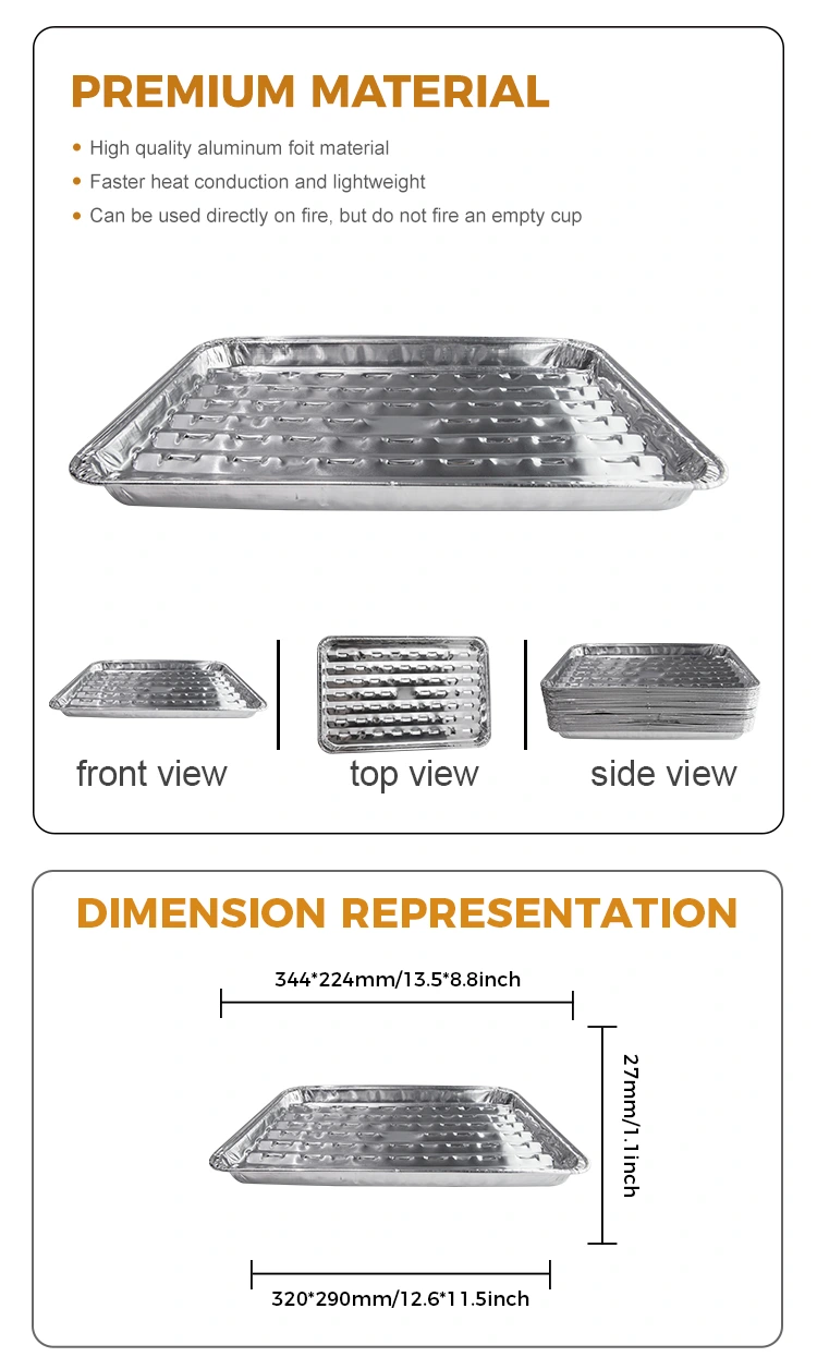 Junchu aluminiowa folia do jednorazowego grilla, grilla z węgla drzewnego, projekt bezdymny, szybkie przewodnictwo cieplne i jednolite ogrzewanie, czyste i higieniczne grilla, grill i obiad niezbędne, styk o wysokiej jakości filtra, rozkładka do dziury i wypukła materiał aluminium, rozkładane rozłok, rozkładane rozłok, rozkładane rozłok, rozkładanie, rozkładka, rozkładka do dziury, rozkładana dziura, rozkładka. Nad tłuszczem, zintegrowane formowanie, powierzchnia ściany jest gładka i czysta jak lustro, zarówno piękna, jak i praktyczna, może znacznie poprawić ogólną konsystencję pakietu, szczególnie odpowiednią dla tych, którzy zwracają uwagę na szczegóły i jakość usług gastronomicznych.