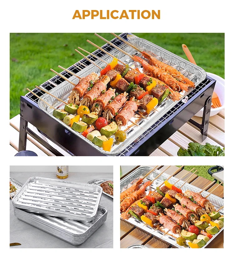 Junchu aluminiowa folia do jednorazowego grilla, grilla na węgiel, grill bezdymny, szybkie przewodnictwo cieplne i jednolite ogrzewanie, czyste i higieniczne grilla, grill i obiad niezbędne, koncentrację klasy żywnościowej, filtra o wysokiej jakości folia aluminiowa, powierzchnia połysku i żaden rodzaj pachny, czysty i higieniczny w użyciu i higieniczny do użytku Nad tłuszczem, zintegrowane formowanie, powierzchnia ściany jest gładka i czysta jak lustro, zarówno piękna, jak i praktyczna, może znacznie poprawić ogólną konsystencję pakietu, szczególnie odpowiednią dla tych, którzy zwracają uwagę na szczegóły i jakość usług gastronomicznych.