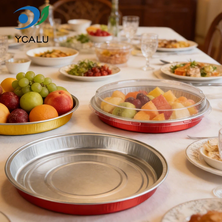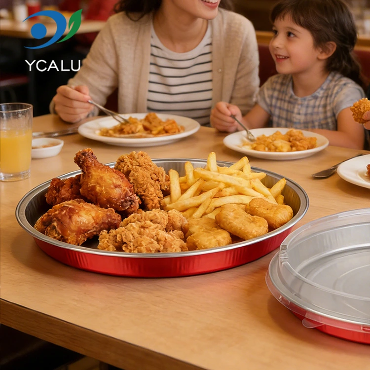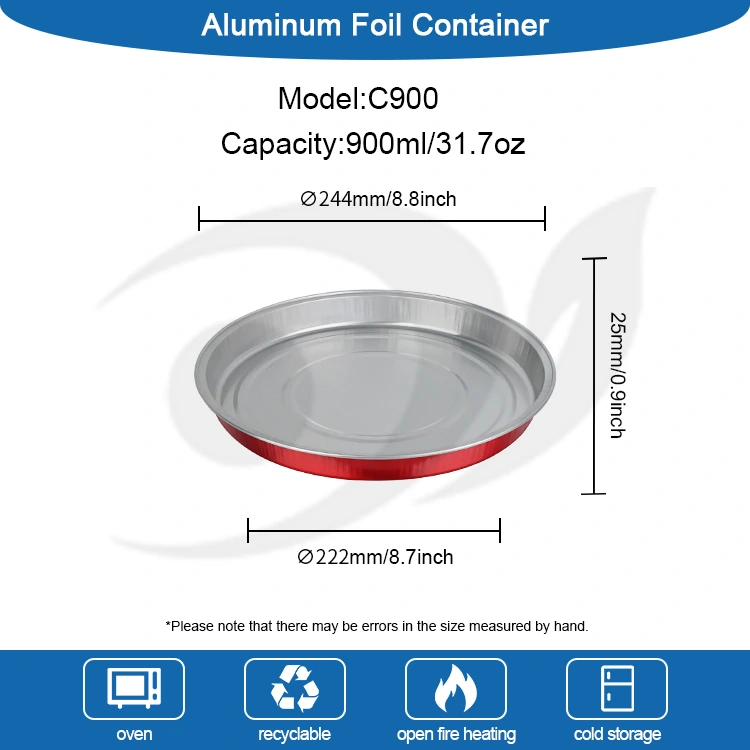 Dostawca folii aluminiowej Yunchu Opakowanie jednorazowej patelni do pizzy C900 Okrągły pojemnik z folii aluminiowej ma gładką i piękną powierzchnię oraz wyjątkową teksturę. Konstrukcja przyjmuje okrągły kształt z zewnętrznymi krawędziami, co nie tylko poprawia ogólną estetykę, ale także pozwala użytkownikom z łatwością chwycić go na gładkich powierzchniach, aby uniknąć poślizgu, biorąc pod uwagę zarówno praktyczność, jak i wygodę. Jego rozsądna konstrukcja konstrukcyjna nadaje się do stosowania w żywności w wielu scenariuszach. Może być szeroko stosowany do robienia pizzy, załadunku owoców, małych opakowań na linii montażowej itp. Ma duże możliwości adaptacji. Niezależnie od tego, czy jest to piekarnia, restauracja, bufet czy inna placówka cateringowa, połączenie to może podkreślić jakość i stać się idealnym wyborem dla konsumentów. Jednocześnie pojemnik można dostosować do w pełni przezroczystych materiałów PET, pokrywek zamykających z powlekanej folii aluminiowej itp., co może nie tylko skutecznie zapewnić bezpieczeństwo podczas transportu i zapobiec wyciekom i uszkodzeniom żywności, ale także wyraźnie podkreślić oryginalny wygląd produktu i poprawić skuteczność produktu.