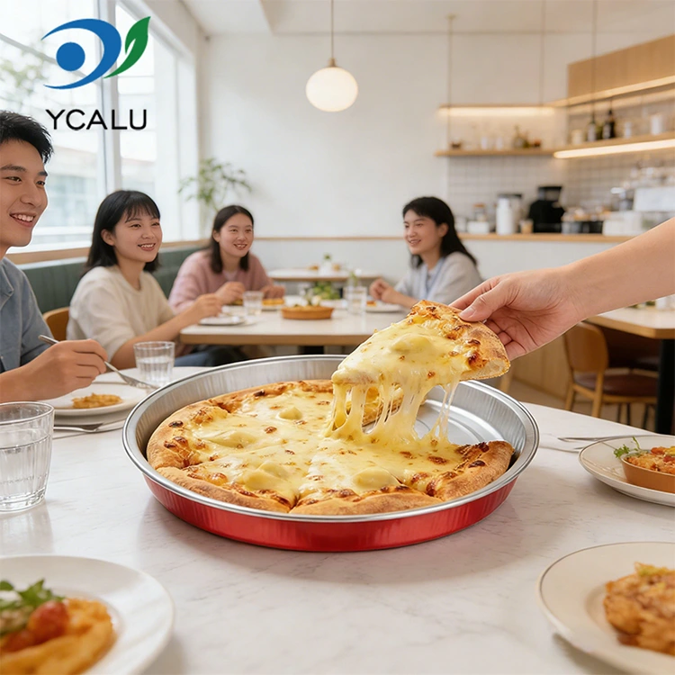 Dostawca folii aluminiowej Yunchu C900 Jednorazowe opakowanie na patelnię do pizzy Okrągły pojemnik z folii aluminiowej wykonany jest z surowej folii aluminiowej przeznaczonej do kontaktu z żywnością, bez zapachu i zanieczyszczeń, dzięki czemu można bezpiecznie dotykać żywności. Grubość jest jednolita i solidna, wytrzymuje wysokie temperatury do 250°C i niskie temperatury do -20°C. Świeżo gorącą pizzę można podać bezpośrednio. Można go przechowywać w lodówce i zachować świeżość bez zmiany pojemnika. Można go spożywać bezpośrednio przez podgrzanie, co znacznie poprawia efektywność podawania jedzenia i pozwala uniknąć trudu czyszczenia. Powłoka PET z folii aluminiowej skutecznie blokuje wnikanie pary wodnej i powietrza oraz zapobiega wyciekaniu tłuszczu. Klasyczny okrągły łuk dokładnie pasuje do wszystkich rodzajów pizzy, dostępnych w wielu rozmiarach od 7 do 9 cali. Doskonale nadaje się do różnych specyfikacji, takich jak ręcznie robiona pizza, włoska pizza i amerykańskie grube ciasto. Nie ma dodatkowej przestrzeni, która zapobiegałaby przesuwaniu się pizzy i wypadaniu dodatków. Jednoczęściowy proces formowania tworzy stabilny kształt, jest odporny na nacisk i kolizje oraz nie ulega łatwo odkształceniu lub uszkodzeniu podczas transportu. Może również zachować swój kształt podczas układania w stosy i przechowywania, całkowicie rozwiązując problem łatwo uszkodzonych opakowań na wynos i zapewniając dostawę każdej pizzy w dobrym stanie.