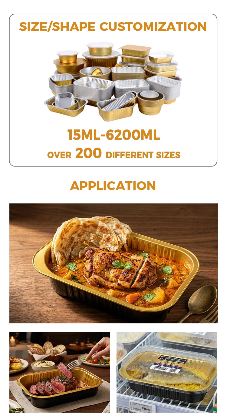 Jednorazowe prostokątne pojemniki cateringowe na wynos z folii aluminiowej