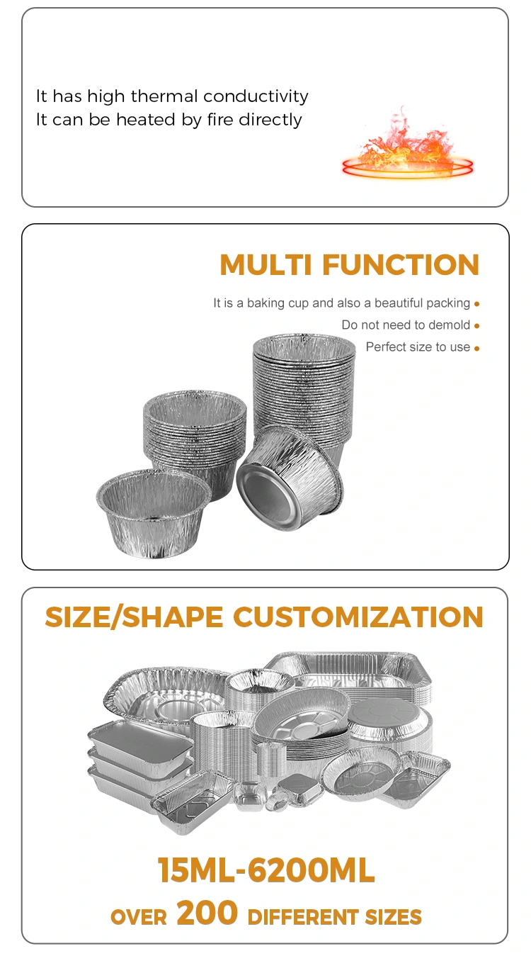 Cechy: Zdrowy i przyjazny dla środowiska, nie wymaga czyszczenia, nadaje się do przygotowywania różnych domowych i wypieków. Jest to najlepszy wybór dla rodzin i piekarni. Folia aluminiowa jest bezpieczna i higieniczna, nie wymaga czyszczenia i można ją piec na otwartym ogniu, co ułatwia przygotowywanie pysznych potraw.