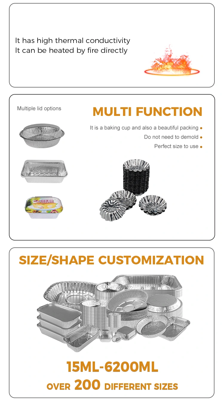 Produkty hurtowe, materiał foliowy aluminium, bezpieczny i nietoksyczny, wykonany z materiału gastronomicznego z folią aluminiową, z dobrą przewodnością cieplną, bezpieczne i nietoksyczne zastosowania są bogate i różnorodne, dzięki czemu można go używać bardziej swobodnie, łatwiejsze do usuwania pleśni, przy użyciu wysokiej temperatury, po zakończeniu gotowego produktu, łatwe do usunięcia filmu, nie-braku, nie uszkadzają kształtu i utrudnić materiał, a nie udało mu się wycofać, stwierdzić, samią, stwierdzić, samią, samią. Do widzenia kłopotów z myciem garnka i łatwej ochrony garnka, izolowanie plam oleju Po użyciu, nie trzeba być czyszczonym, gładkie dno nie jest łatwe do spalania i przyklejania się do dna, nietopcowe jedzenie jest łatwe do gotowania, dno jest gładkie, może wytrzymać -20 ° C ~ 300 ° C, można podgrzewać przez otwarty płomień, a pleśń jest podgrzewana.