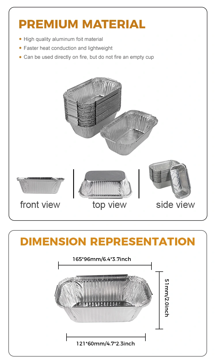 Prostokątne pojemniki na srebrne aluminiowe pojemniki z folii aluminiowej w 2044 r. Hurtowni z dostawcy folii aluminiowej Yunchu jest odpowiednie do różnych scenariuszy, niezależnie od tego, czy jest to grill na świeżym powietrzu, czy zgromadzenie rodzinne. Kupcy mogą dostosowywać wzory i drukowanie zgodnie z ich potrzebami, co czyni go wyjątkowym wyborem dla opakowań na wynos, które przyciągają wzrok klientów. Pojemnik obsługuje otwarte ogrzewanie płomienia i podgrzewanie lampy olejowej i równomiernie prowadzi ciepło, zapewniając równomiernie podgrzewane jedzenie i nie jest łatwe do przyklejenia się do patelni. Można go używać natychmiast, nawet po umieszczeniu w frytek powietrznej, a konstrukcja wklęsła i wypukła na dole zwiększa tarcie i zapobiega poślizgnięciu się. Ustanawiające po bokach zwiększają wytrzymałość produktu, podczas gdy konstrukcja hemming zapewnia przyleganie dopasowania do pokrywki, skutecznie blokującą w temperaturze pokarmu.