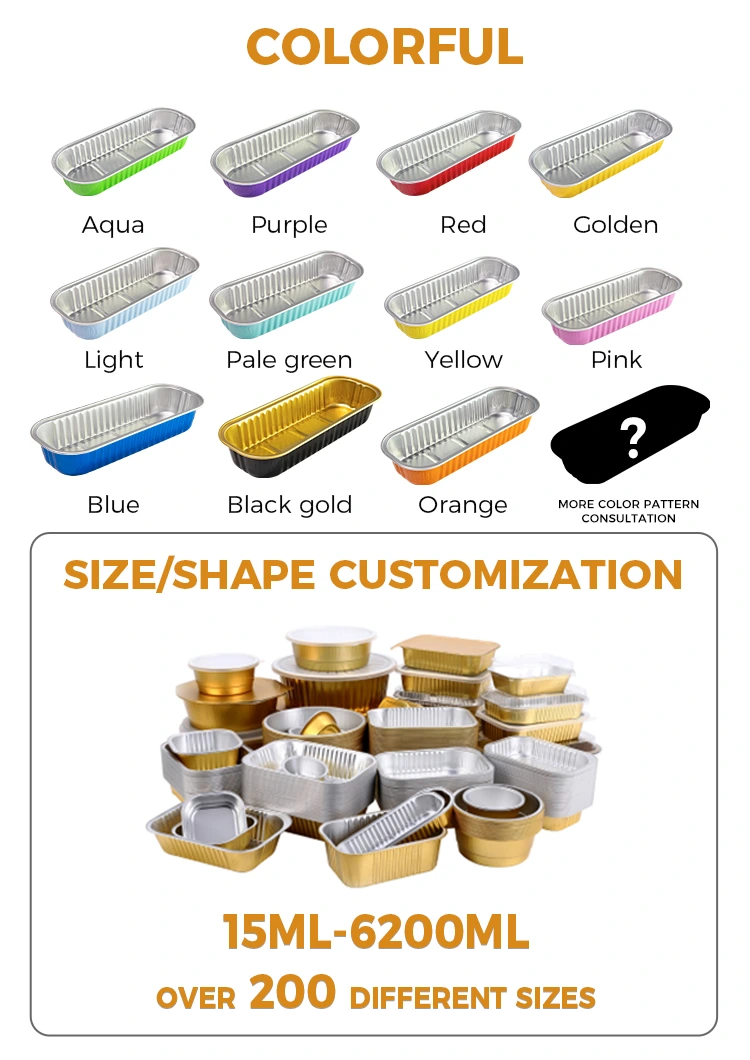Dostawca folii aluminiowej Yunchu M210 Prostokątne ciasto do pieczenia aluminiowe pojemniki na aluminiowe folii są odpowiednie do wszelkiego rodzaju przysmaków, aby wykonać frytki frytki, frytki smażonego kurczaka, smażone skrzydła z kurczaka, sera, ciasto itp., Bezpośrednio zdejmij je jako jadalny pojemnik, odrzucanie go bezpośrednio po użyciu, dysponowne talerz jest bardziej wygodne.