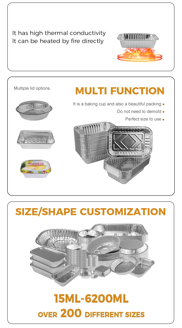 Model Folii Aluminiowej Yunchu Model 2322 Prostokątna kontener z folii aluminiowej srebrny aluminiowy jest bardzo popularny na rynku ze względu na doskonałą jakość produktu i unikalną konstrukcję. Struktura produktu jest elastyczna, aby zaspokoić potrzeby różnych scenariuszy i zapewnia niestandardowe usługi, w tym logo i drukowanie wzorów, które pomagają ulepszyć wizerunek marki. Ponadto bardzo preferowana jest również kombinacja hurtowa hurtowa usługi zamawiania folii aluminiowej, z jednym dostosowanym MOQ 1000 sztuk.