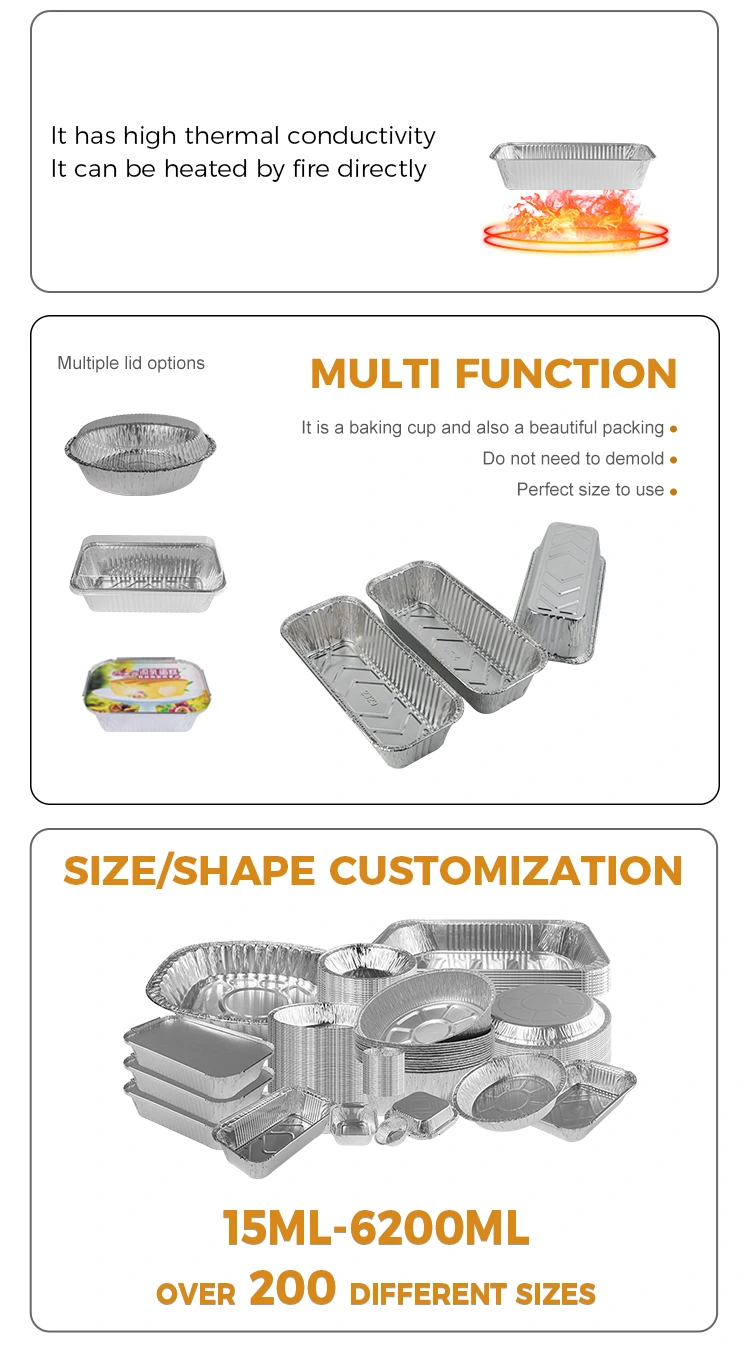 Prostokątna blacha do pieczenia chleba srebrne pojemniki na folii aluminiowe dostarczone przez dostawcę folii aluminiowej Yunchu jest dostępny w różnych rozmiarach i specyfikacjach, odpowiedni dla wszystkich rodzajów sprzętu do garnków. Niezależnie od tego, czy jest to duży grill, czy mały piekarnik domowy, może z łatwością poradzić sobie z nim. Występuje w różnych rozmiarach i może zaspokoić potrzeby różnych grilla otwartego płomienia, niezależnie od tego, czy jest to grill na zewnątrz, czy tymczasowe zastosowanie jako danie, nie będzie problemu.