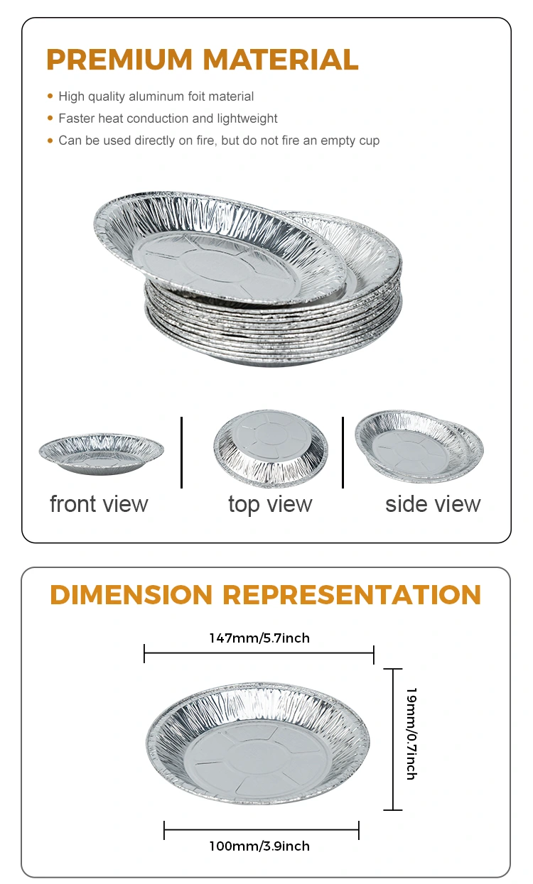 Folia aluminiowa Yunchu okrągłe powietrze Fryer Fryer Srebrny pojemnik na żywność aluminium aluminium, który ma charakterystykę higieny i ochrony środowiska, jest wykonany z zagęszczonych i odpornych na korozję materiałów, nie łatwy do zdeformowania, może bezpośrednio kontaktować żywność, nie jest obawa o wysokiej temperaturze, nie jest spalona ani paskowa, i nie jest łatwa do wylewania. Może wytrzymać wysokie temperatury do 250 ° C, dzięki czemu nadaje się do różnych metod gotowania, takich jak pieczenie w wysokiej temperaturze, piekarnik i grill, bez obaw. Dostępnych jest wiele specyfikacji, aby zaspokoić różnorodne potrzeby w zakresie pieczenia o różnych rozmiarach, umożliwiając łatwo poradzić sobie z różnymi wymaganiami do produkcji żywności.