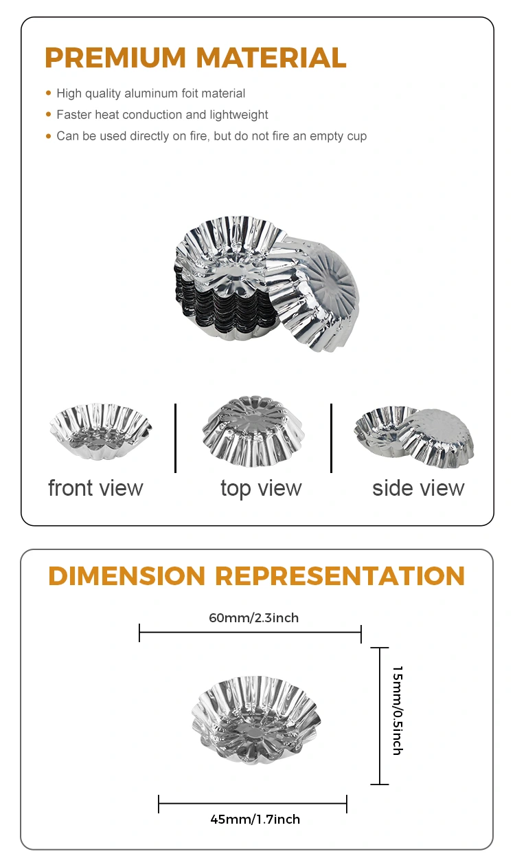 Dostawca folii aluminiowej Yunchu okrągły jaja Tartka Pieczenie srebrna aluminiowa foliowa pojemnik na żywność, aby spełnić różne gusta, różnorodne rozmiary do wyboru, materiał foliowy aluminium jest bezpieczny i nietoksyczny, wykonany z materiału aluminiowego, z dobrym przewodnictwem termicznym, bezpieczną i Jedz, mocna przewodność cieplna, materiał foliowy aluminium nie jest łatwy do odkształcenia, wodoodporna/odporna na olejek, dobra przewodność cieplna, można włożyć do parowca, frytkownicy powietrza, grilla itp., Dostępne są różne style, dostępne są różne specyfikacje i rozmiary do zakupu, mogą tworzyć jaja torty i inne przekąski, gotowe produkty, gotowe produkty, jeden puszek, gotowy produkt, jest gotowy produkt, jest gotowy produkt. Piękne, nie łatwe do odkształcenia, długoterminowe parowanie, pieczenie nie będzie się deformować ani pękać, sprzyja pojawieniem się produktu w celu uzupełnienia efektu.