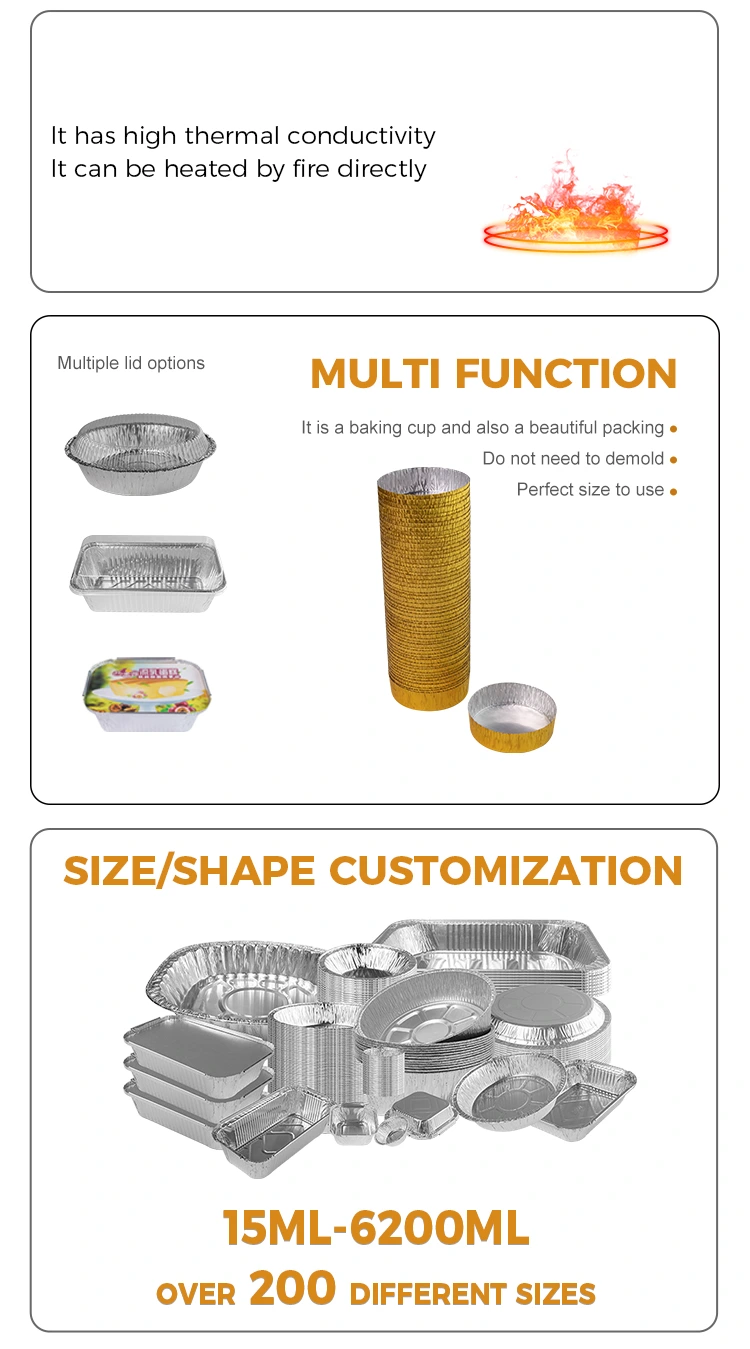 Ten okrągły pojemnik na srebrny srebrny aluminiowy jest odpowiedni do pakowania różnych małych produktów piekarniczych, takich jak makaroniki, ciasteczka i tarty. Ściśle kontrolujemy każdy etap produkcji pod względem kontroli jakości, aby zapewnić, że wszystkie produkty spełniają krajowe standardy bezpieczeństwa, i uchwalili niemiecki certyfikat ERP, certyfikat UE SGS i certyfikat ISO9001.
