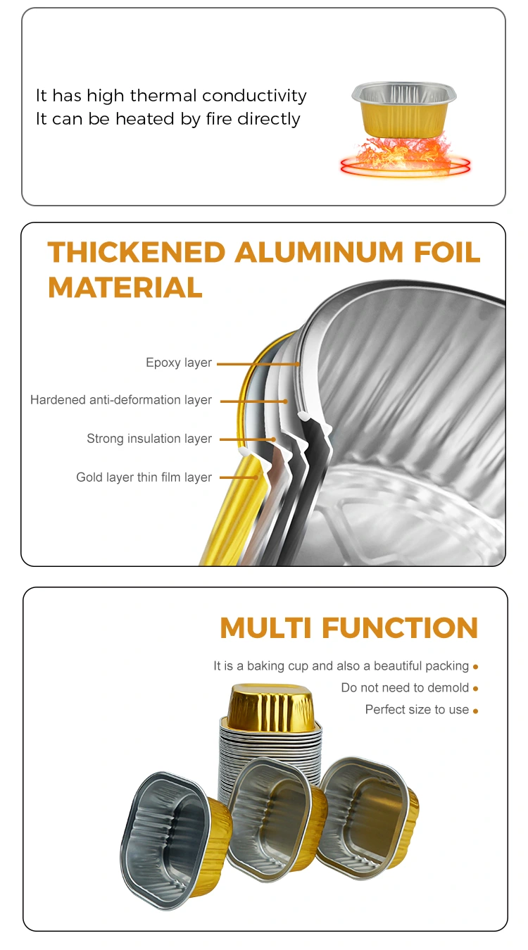 Zaprojektowane tak, aby były zarówno piękne, jak i funkcjonalne, kwadratowe foremki do pieczenia deserów Pojemnik z folii aluminiowej Smoothwall został zaprojektowany tak, aby wytrzymywał wysokie temperatury bez blaknięcia. Wykonany jest z materiału 8011-0 i ma maksymalną odporność na temperaturę do 660°C. Ogólne wyposażenie kuchni może również osiągnąć temperaturę 200°C, co gwarantuje, że żywność nie przypali się ani nie pęknie. Dzięki wykonaniu z pogrubionego materiału można go używać wielokrotnie. Całość została obrobiona czterema warstwami technologii. Po ugotowaniu można go podnieść i zjeść bez obawy o deformację. Ponadto jest również bardzo wygodny w czyszczeniu i umożliwia bezpośredni kontakt ze składnikami w celu utrzymania higieny.